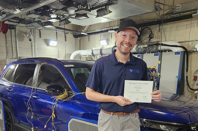 - NVC Paves Path to Graduate’s STEM CareerWhen Michael Longoria began attending Northwest Vista College (NVC) in 2014, he knew he wanted a career in Science, Technology, Engineering, and Math (STEM). Longoria’s enthusiasm for STEM led to what could be described as a light-bulb moment that changed his life. That monumental moment occurred when he was walking to class one day and spotted a poster for NVC’s nanotechnology program. Nanotechnology, a field of science and engineering that focuses on the design and manufacture of extremely small devices and structures, had piqued his interest in a big way. Longoria would go on to earn a Certificate in Nanotechnology in 2017. “I instantly fell in love with nanotechnology and all its applications across multiple fields: medical, automotive, cell phones, and computers,” he said. “I want to work with novel materials and hopefully change the world in some way, from new types of medicines to 3D-printed homes.” Longoria said attending Northwest Vista College has impacted his life immensely. Some of his best memories of campus life include witnessing the passion his professors had for their subjects and going on class trips where he watched Ph.D. students conduct lab work. He added that the labs, class projects, and instrumentation classes at NVC gave him the foundation, hands-on experience, and essential skills required to acquire jobs in the STEM field. Since earning his Technical Certificate in Nanotechnology, Longoria has worked as a laboratory and chemical technician. He’s now a particle technician at Southwest Research Institute in a particle science and technology group that runs emissions testing and soot analysis on commercial vehicles. “We can do various tests with anything that has to do with particulate matter,” he said. “During COVID, for example, clients reached out to us to test N95 masks for their efficacy on filtering particulate matter.” In the spring, he plans to head back to the classroom to earn a bachelor's degree in mechanical engineering/material science at the University of Texas at San Antonio. Michael Longoria is among the graduates whose stories are being highlighted as part of NVC’s 30th anniversary celebration. If you have a story to share, please email NVC-News@alamo.edu VISIT NVC'S 30 YEAR CELEBRATION WEBPAGE